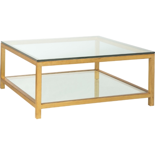 Artistica Home Per Se Square Cocktail Table in Gold Leaf Metal & Glass