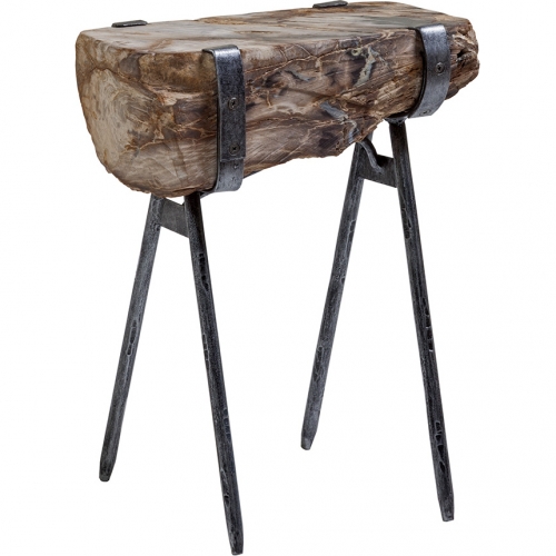 Artistica Home 2035-955 Wyatt Spot End Table Petrified Wood Iron