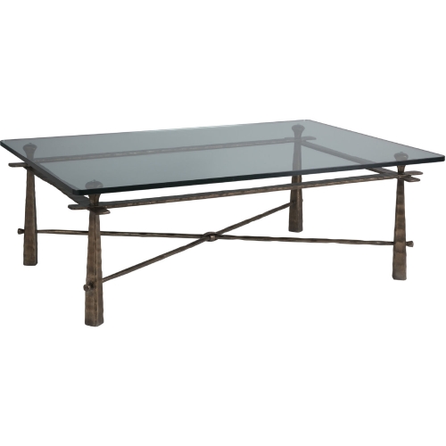 Artistica Home 2129-945C Cortona Cocktail Coffee Table Hammered Bronze Iron Glass
