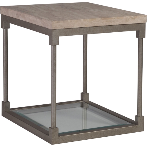 Artistica Home Topa End Table in Sand Travertine, Silver Leaf & Glass