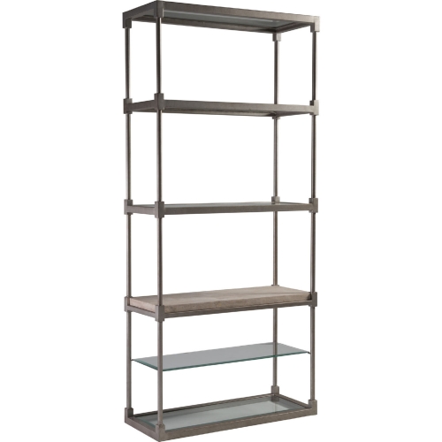 Artistica Home 2135-991 Topa Etagere Bookcase Sand Travertine Silver Leaf Glass