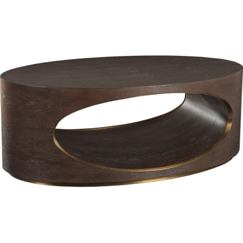 Artistica Home Verbatim Oval Cocktail Table in Brown & Ceruse Wood & Brass