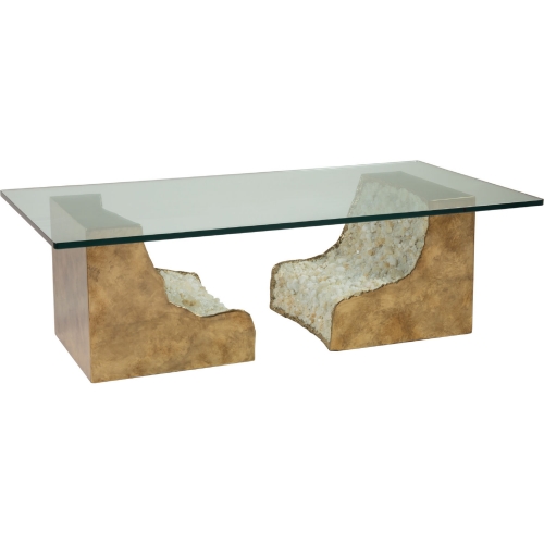 Artistica Home Apricity Cocktail Coffee Table in Bronze, Crushed White Stone & Glass