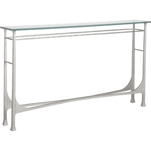 Artistica Home Bruno Console Table in Antique Silver Metal & Glass