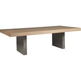 Modern organic design crafted from 5mm sawn French Oak veneers and select hardwoods in their natural color with metal accents on the legs and base in pitted aluminum with an antiqued gun metal finish. A unique base, with the wrapped aluminum providing balance to the weight of the thick 60" top. Verite features sawn planks of European White Oak in their natural state and will show all of the hallmarks of natural dried wood, including knots, color variation, and cracking. Although finished in a highly protective top coat, every Verite top will vary in appearance and color from piece to piece.