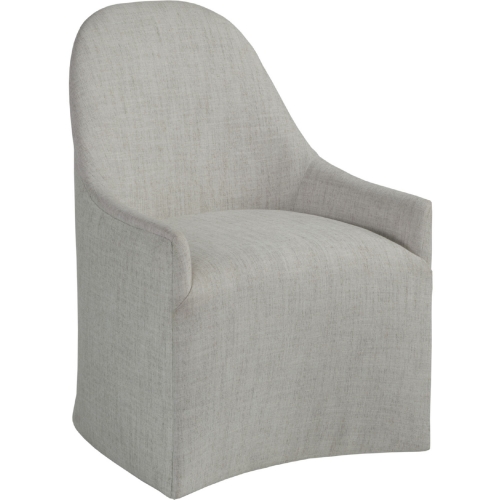 Sculptural casual and transitional design with casters. Available in the misty gray indoor performance fabric Rockport 226311 with a linen weave construction and soft feel.