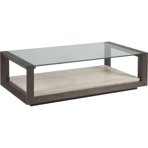 Artistica Home 2270-945 Venerato Cocktail Coffee Table Mocha Wood Travertine Tempered Glass