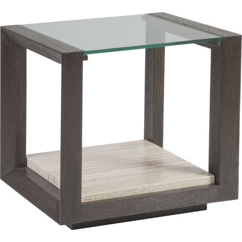 Artistica Home Venerato End Table in Mocha Wood, Travertine & Tempered Glass