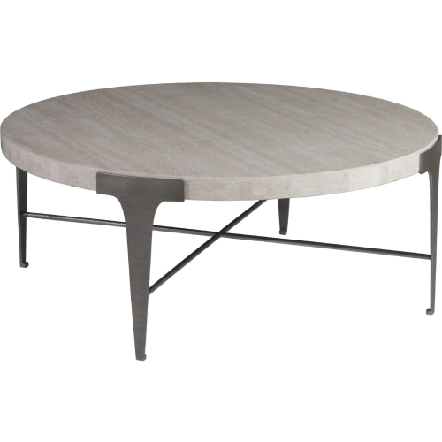 Artistica Home 2271-947 Cachet Round Cocktail Table White Vein Travertine Silver Leaf