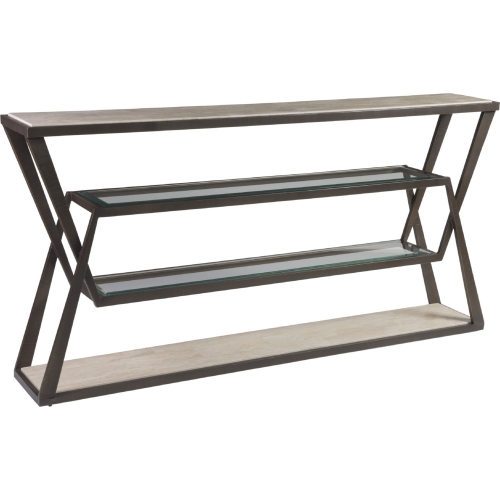 Artistica Home Adamo Cafe Console Table in Travertine, Brown Steel & Glass