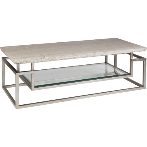 Artistica Home 2286-945 Theo Coffee Table Chipped Edge White Vein Travertine Iron Glass