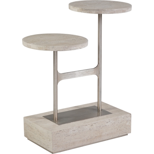 Artistica Home 2296-955 Cirque 22" Tiered Side Table White Vein Travertine Iron