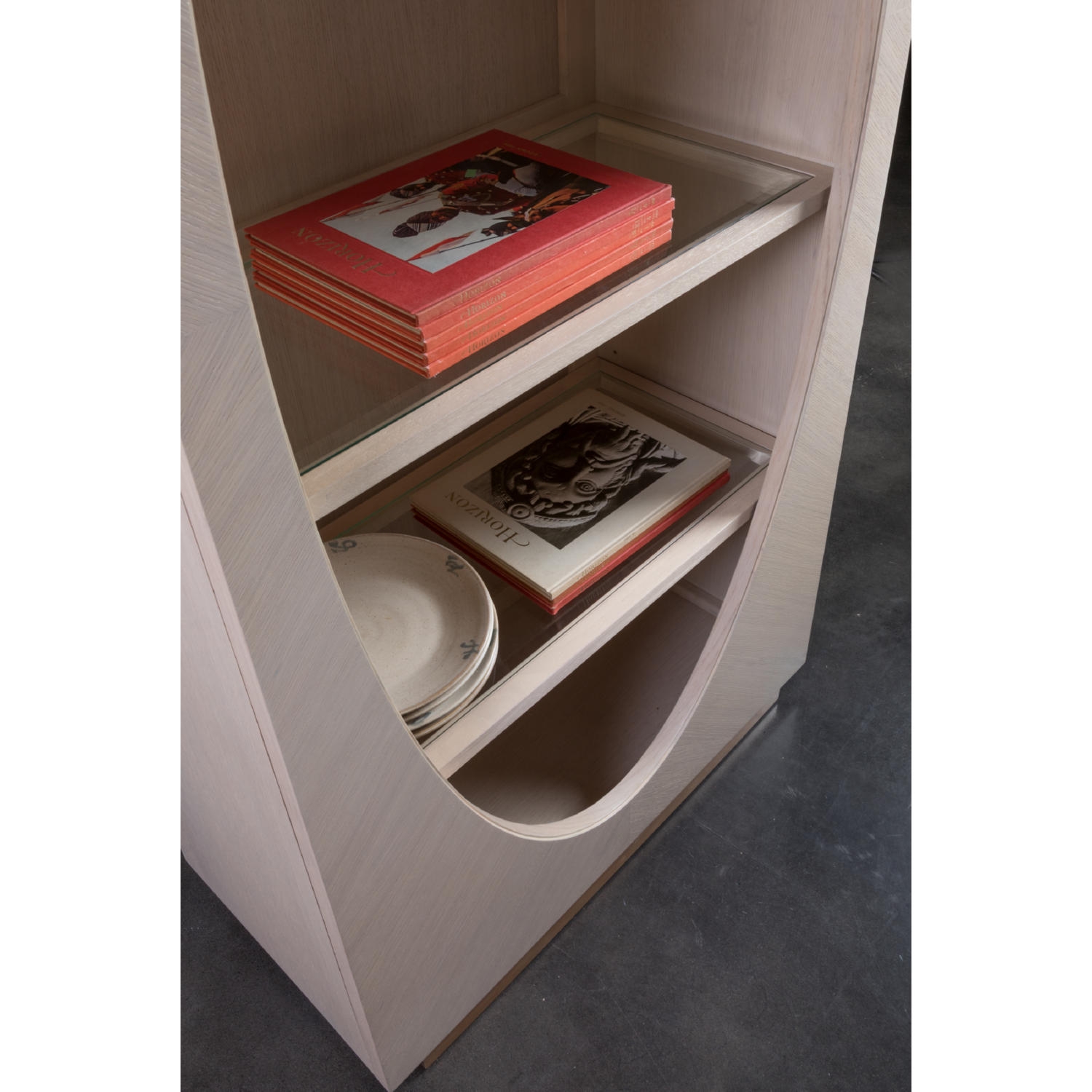 Artistica Home 2358-991 St Ives Bookcase Sandscape White Wash Brushed Oak Glass