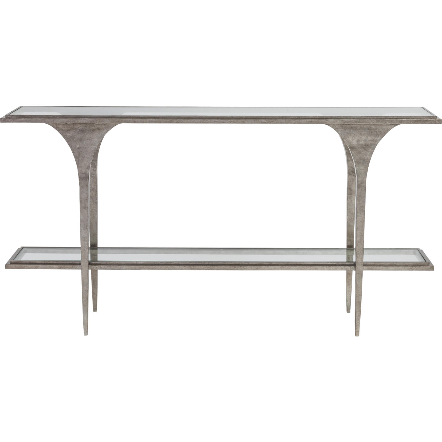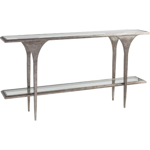 Artistica Home Porto Console Table in Hammered Textured Silver Iron & Glass
