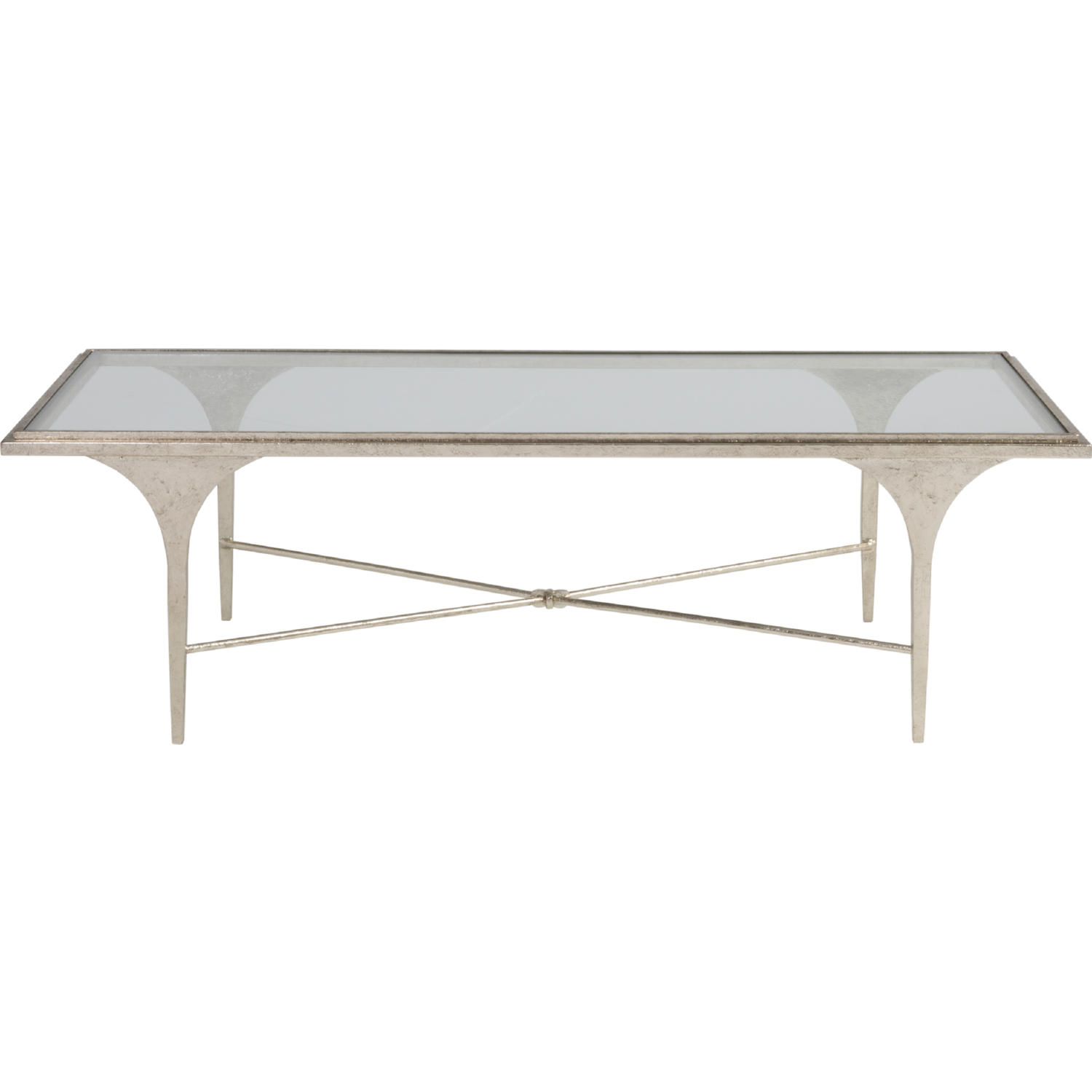 Artistica Home Porto Cocktail Coffee Table in Hammered Textured Champagne Iron & Glass