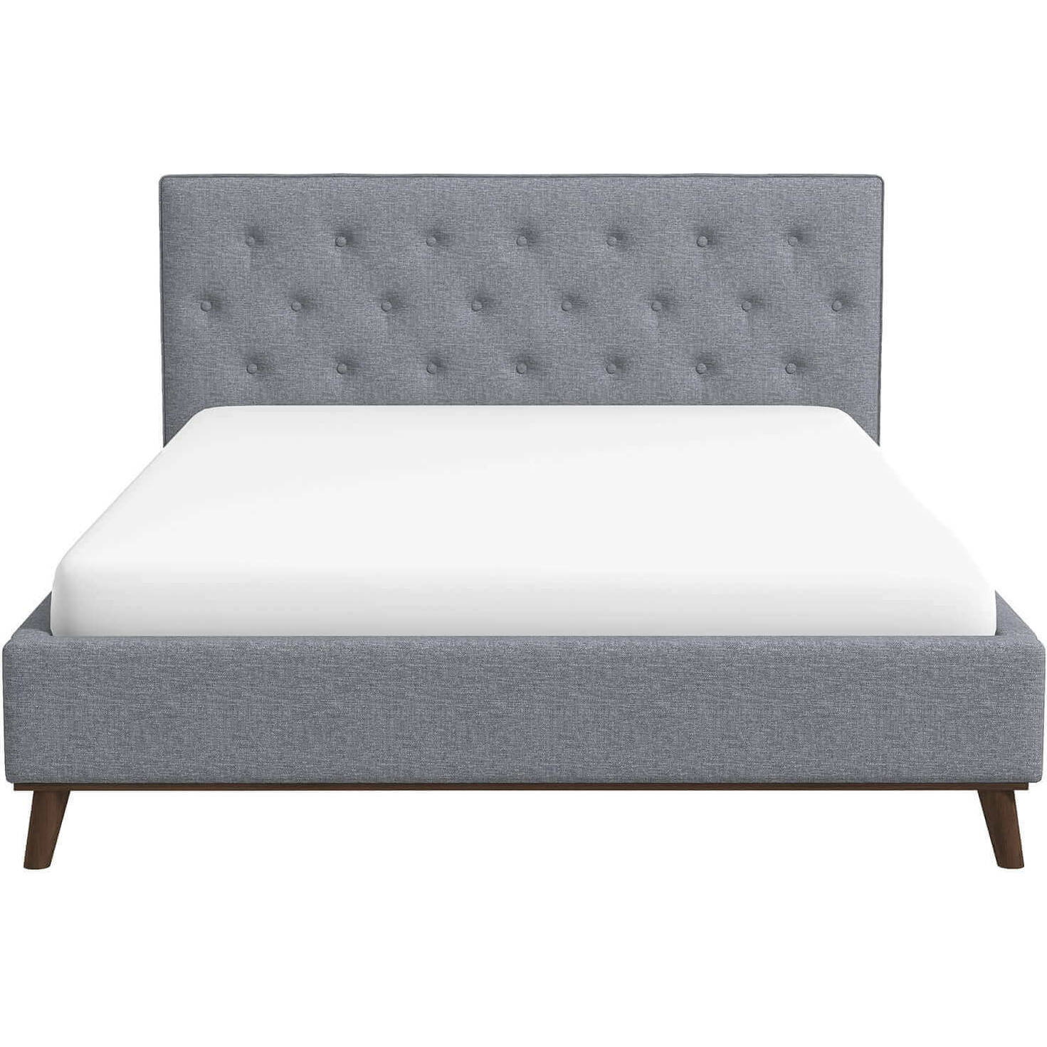 Ashcroft Furniture BED00500306 Graceville King Platform Bed Tufted Grey Fabric