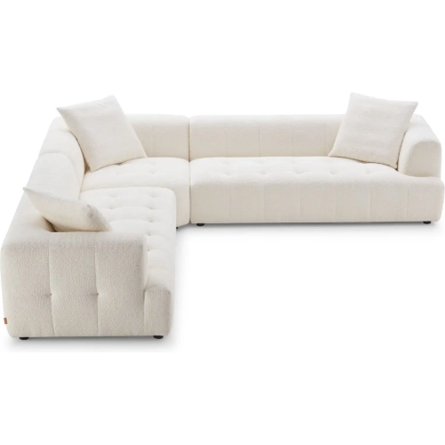 Ashcroft Furniture CSC03101201 Kaynes Corner Sectional Sofa Tufted Ivory Teddy Boucle Fabric