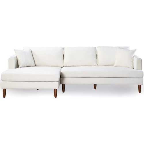 Ashcroft Furniture SEC02900701 Blake L Shaped Sectional Sofa Left Facing Chaise Cream Velvet