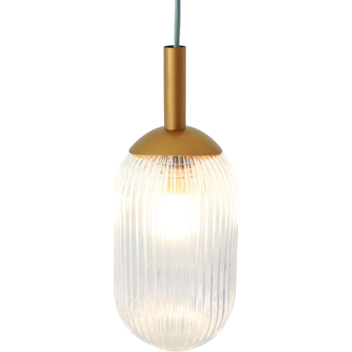 • Capsule shaped ribbed glass shade and a bronze painted finish metal