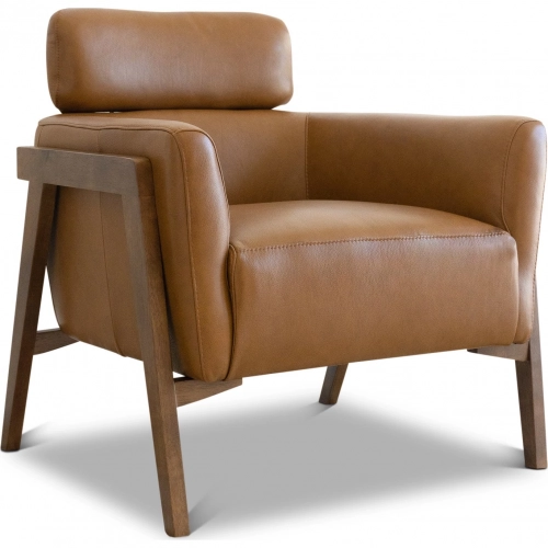 Ashcroft Furniture LCH01303301 Kayson Accent Lounge Chair Cognac Tan Leather Wood