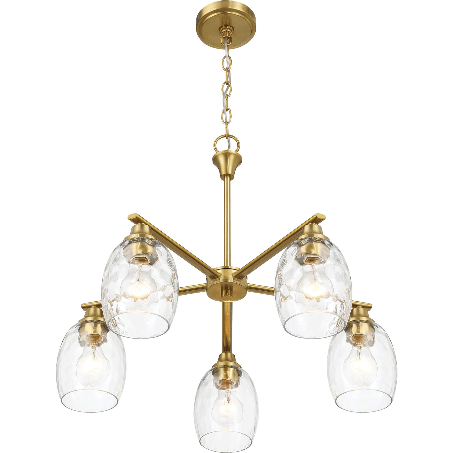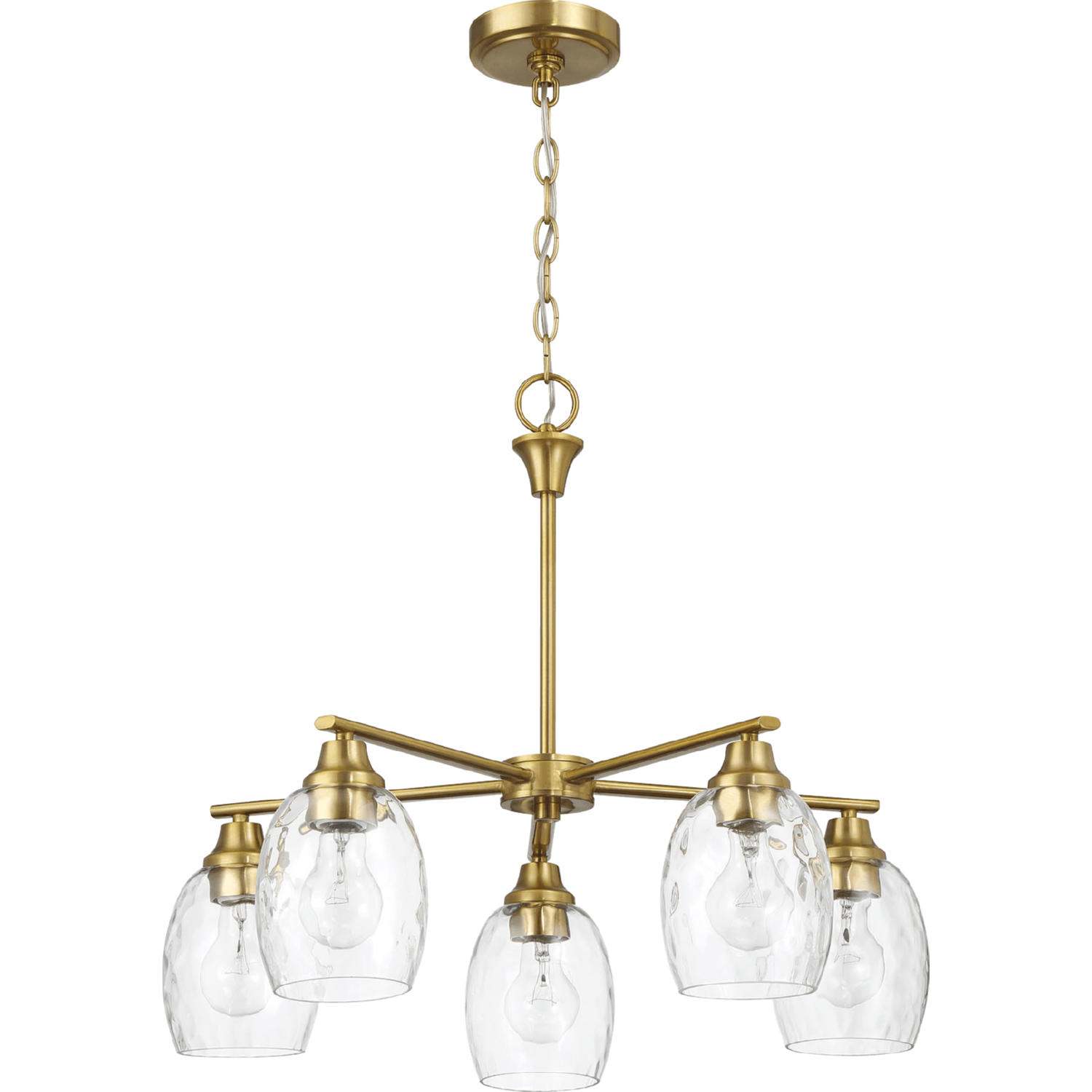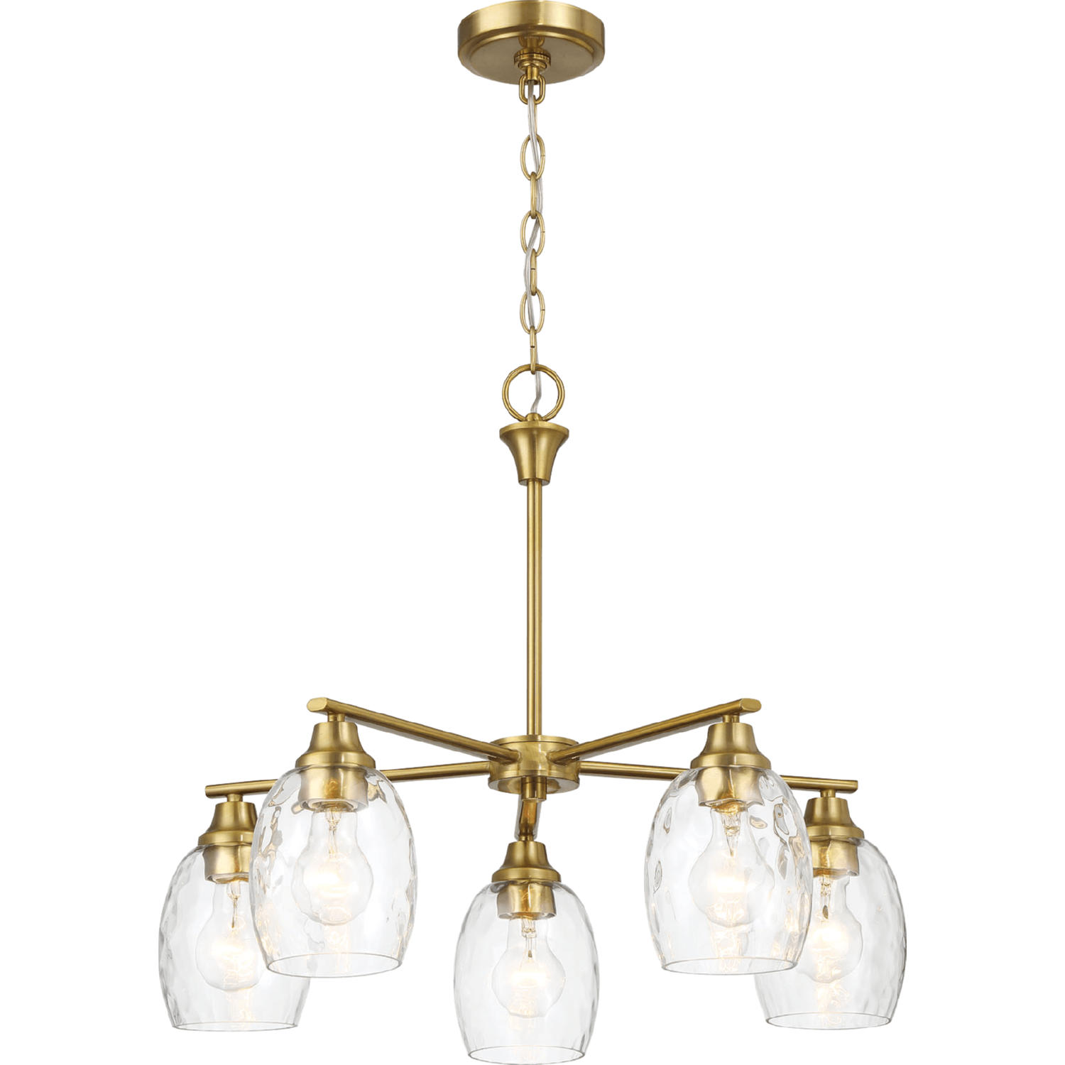 Ashcroft Furniture Elegance 5 Light Chandelier in Golden Brass Finish & Clear Water Glass