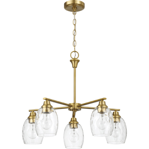 Ashcroft Furniture PNL03900401 Elegance 5 Light Chandelier Golden Brass Finish Clear Water Glass
