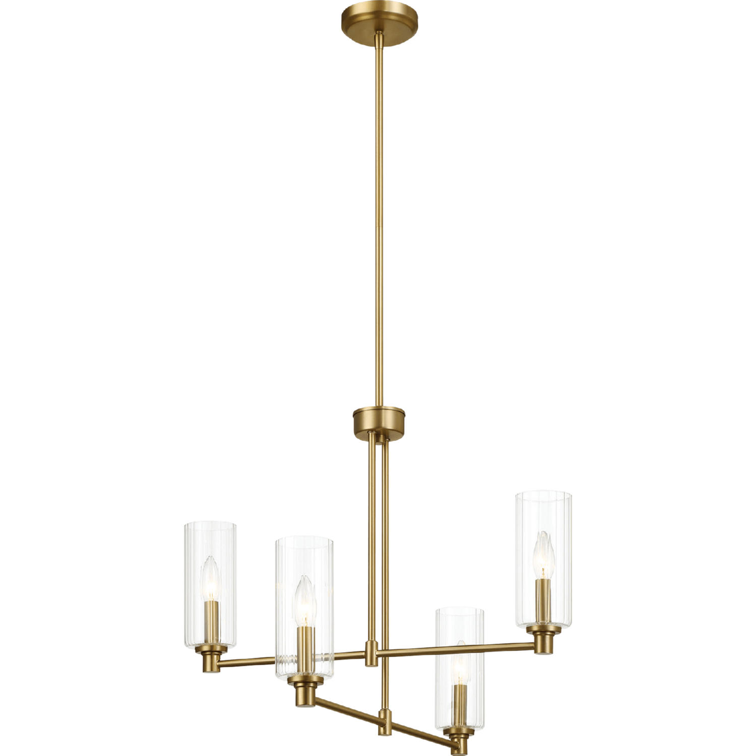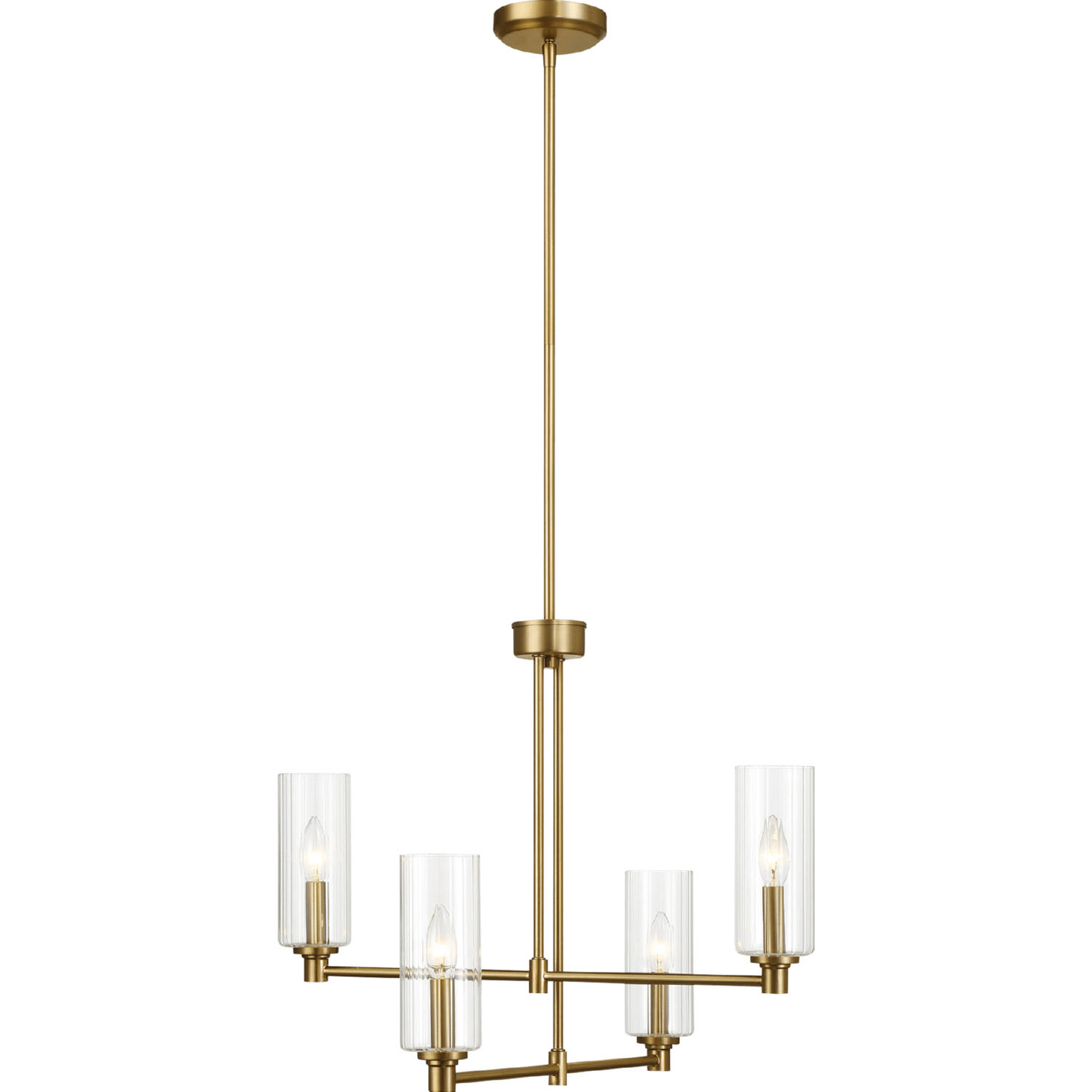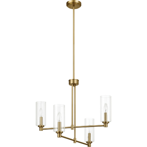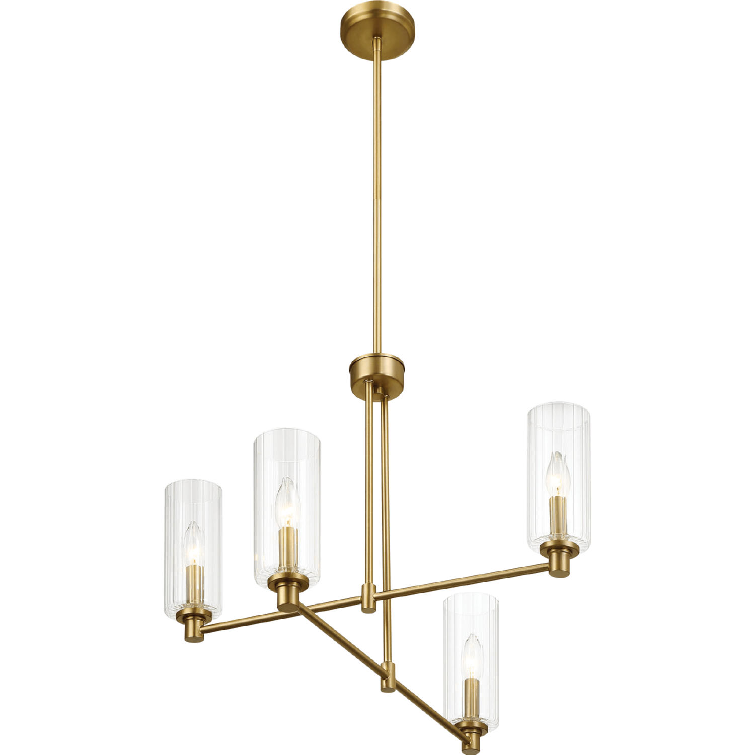 Ashcroft Furniture Enigma 4 Light Chandelier in Satin Brass & Clear Ribbed Glass