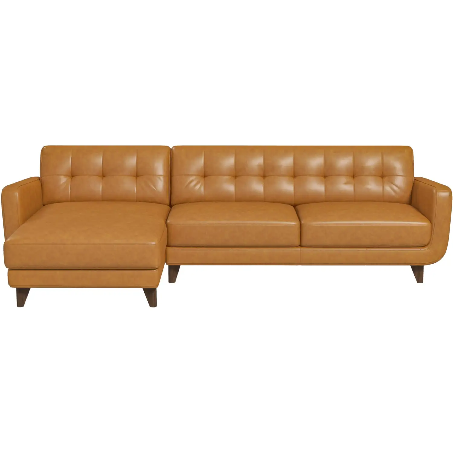 Ashcroft Furniture Allison Sectional Sofa with Left Facing Chaise in Tufted Tan Leather