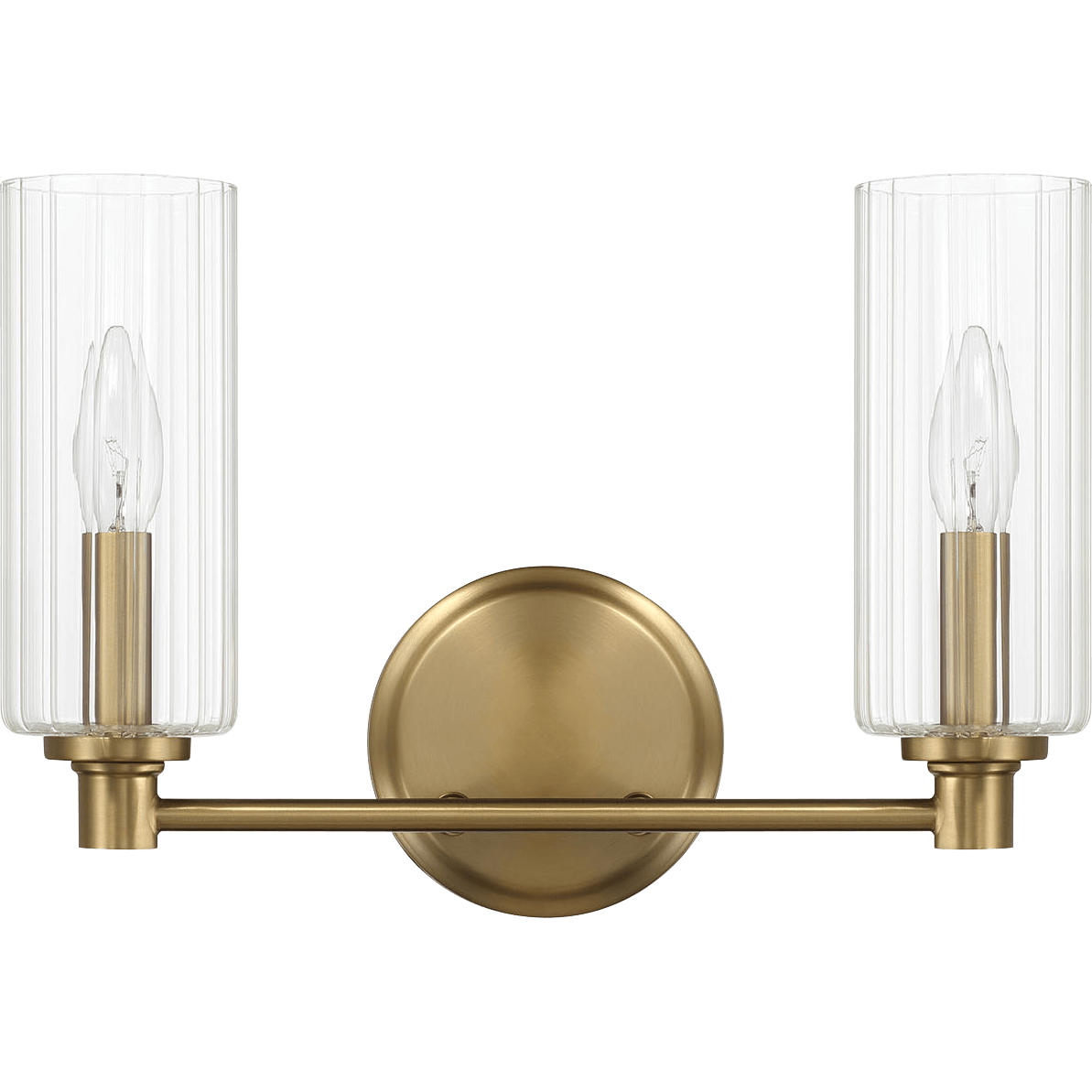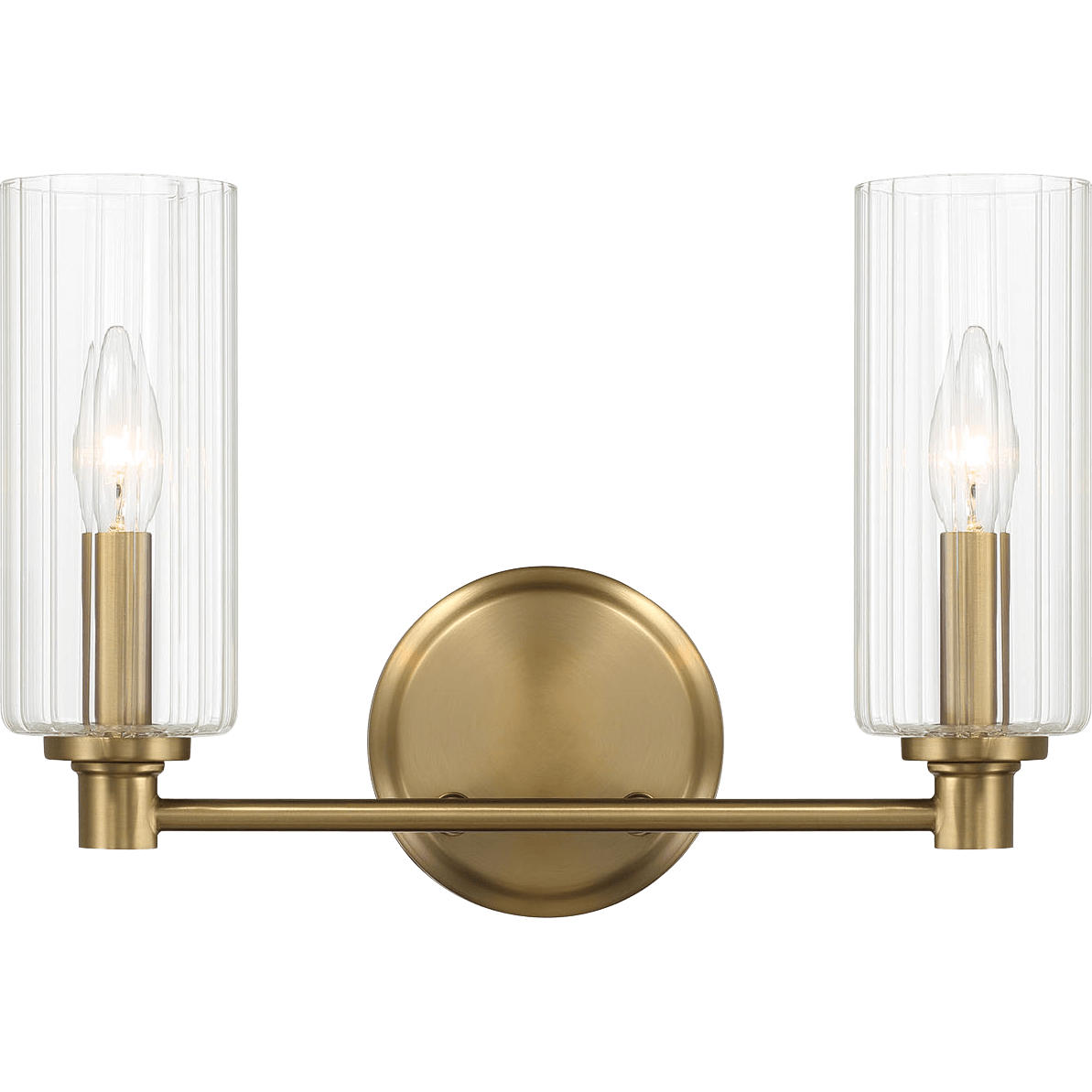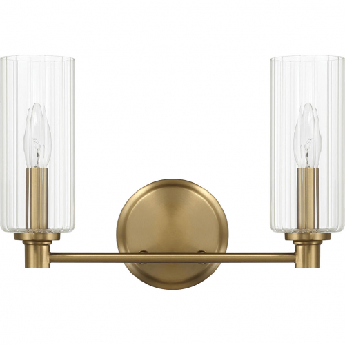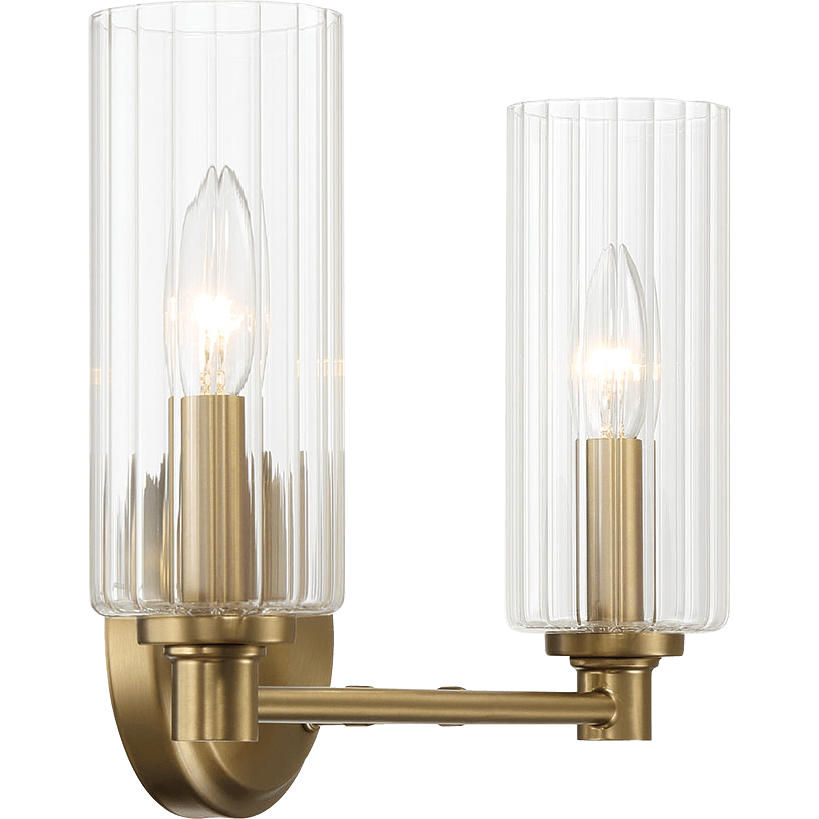 Ashcroft Furniture WLL03901001 Regal 2 Light Bathroom Vanity Light Satin Brass Clear Ribbed Glass