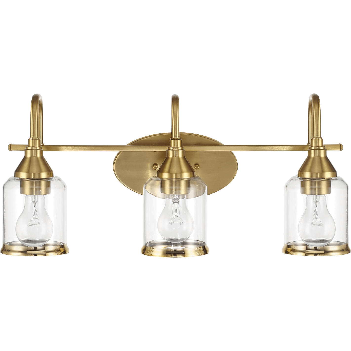 Ashcroft Furniture Twilight 3 Light Bathroom Vanity Light in Satin Brushed Gold Metal & Glass