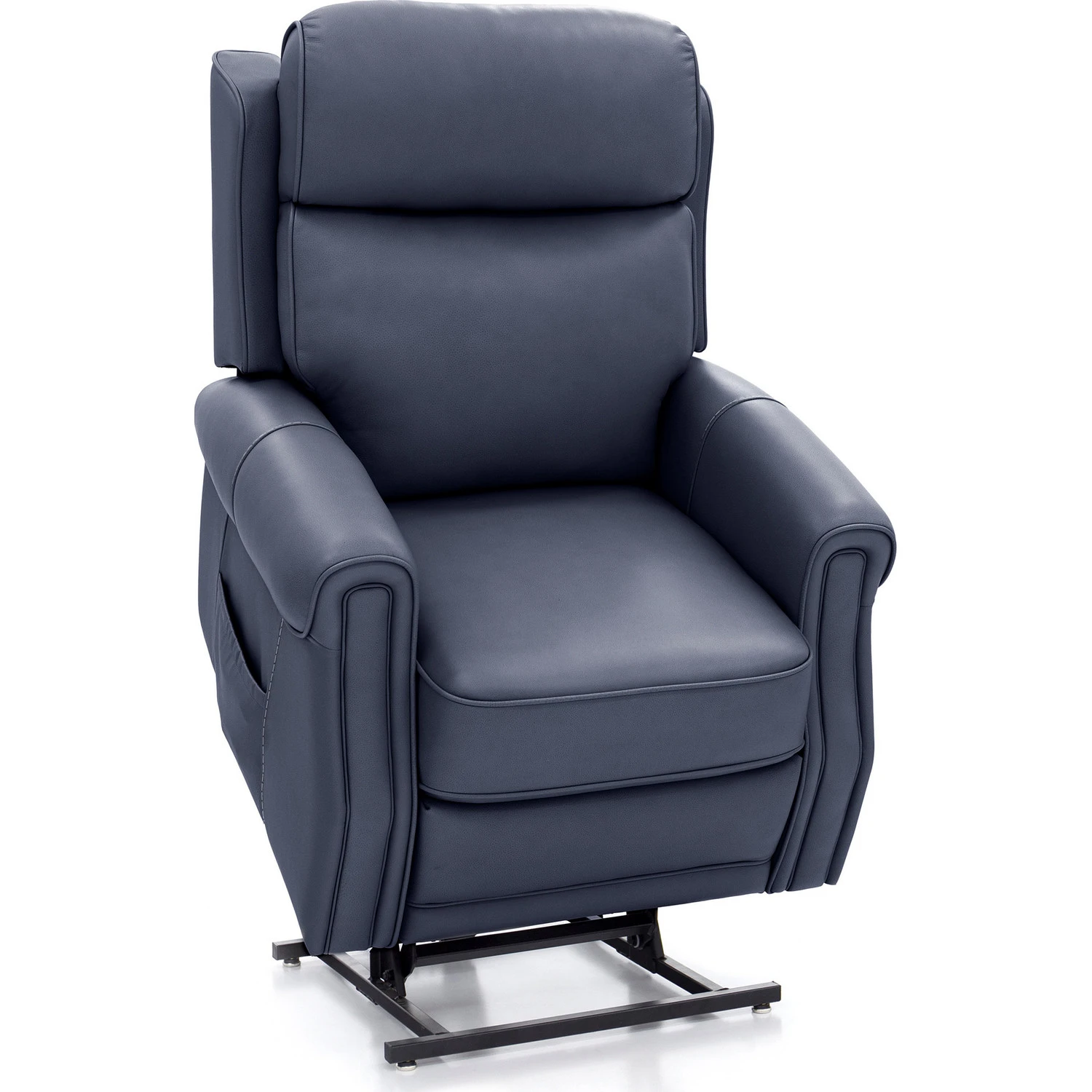 BarcaLounger Lance Power Lift Recliner with Power Head Rest, Lumbar & Heat in Blue Leather