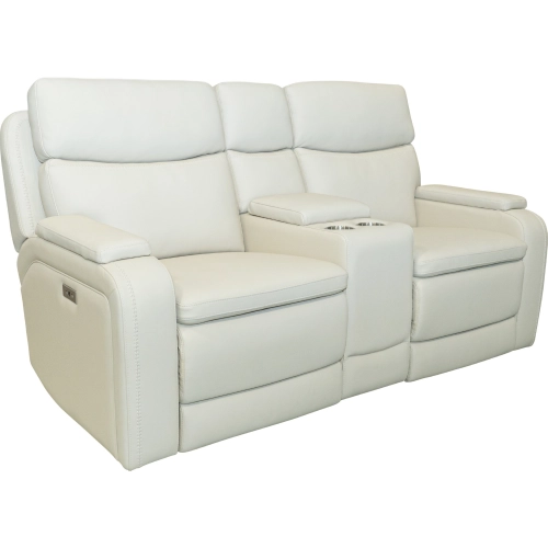 BarcaLounger Gunner Power Recline Console Loveseat with Power Head Rests in Kobi Almond Off White Leather