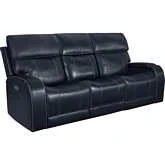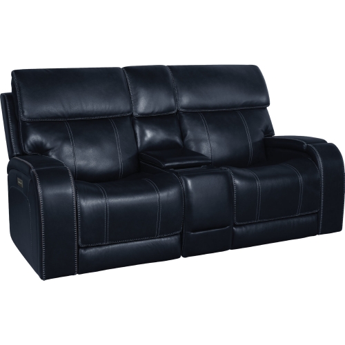 BarcaLounger 24PHL-1188-3750-47 Glenwood Power Recline Console Loveseat Lay Flat Head Rest Lumbar Blue Top Grain Leather