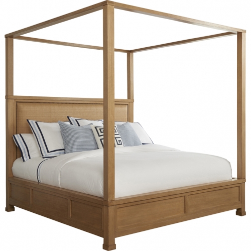 Barclay Butera Shorecliff Canopy CA King Bed in Sandstone Wood & Raffia Fabric