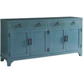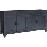 For those who never seem to have enough storage space, the 78" Bayside buffet is a stylish solution. Four full-extension self-closing drawers are felt lined, with one divided for silver. Behind each pair of doors are two large adjustable shelves. This statement piece is available as shown in the Sandstone finish, but also available in Sailcloth, Marine or Seaglass finishes.