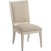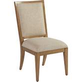 The classic design of the Eastbluff dining chair marries a wooden frame, shown in the Sandstone finish with welted upholstered panels on the inside and outside back of the piece. The design comes standard in the Ventura pattern 423311, and is also available in the Sailcloth finish.