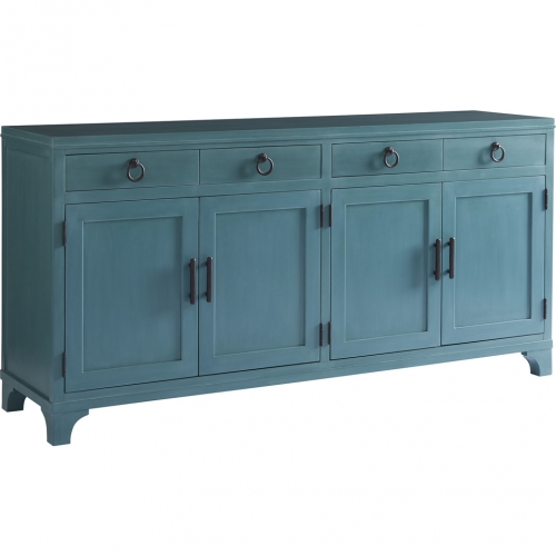 For those who never seem to have enough storage space, the 78" Bayside buffet is a stylish solution. Four full-extension self-closing drawers are felt lined, with one divided for silver. Behind each pair of doors are two large adjustable shelves. This statement piece is available in the Sandstone, Sailcloth, Marine or Seaglass finishes.