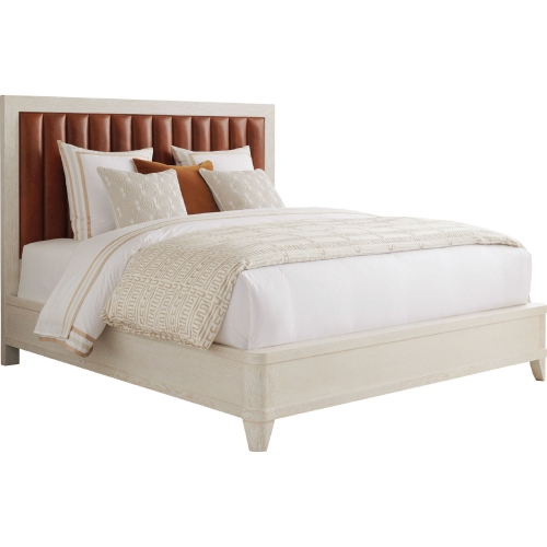 Barclay Butera 931-154C Cambria King Bed Channel Tufted Burnished Tan Leather White Wood