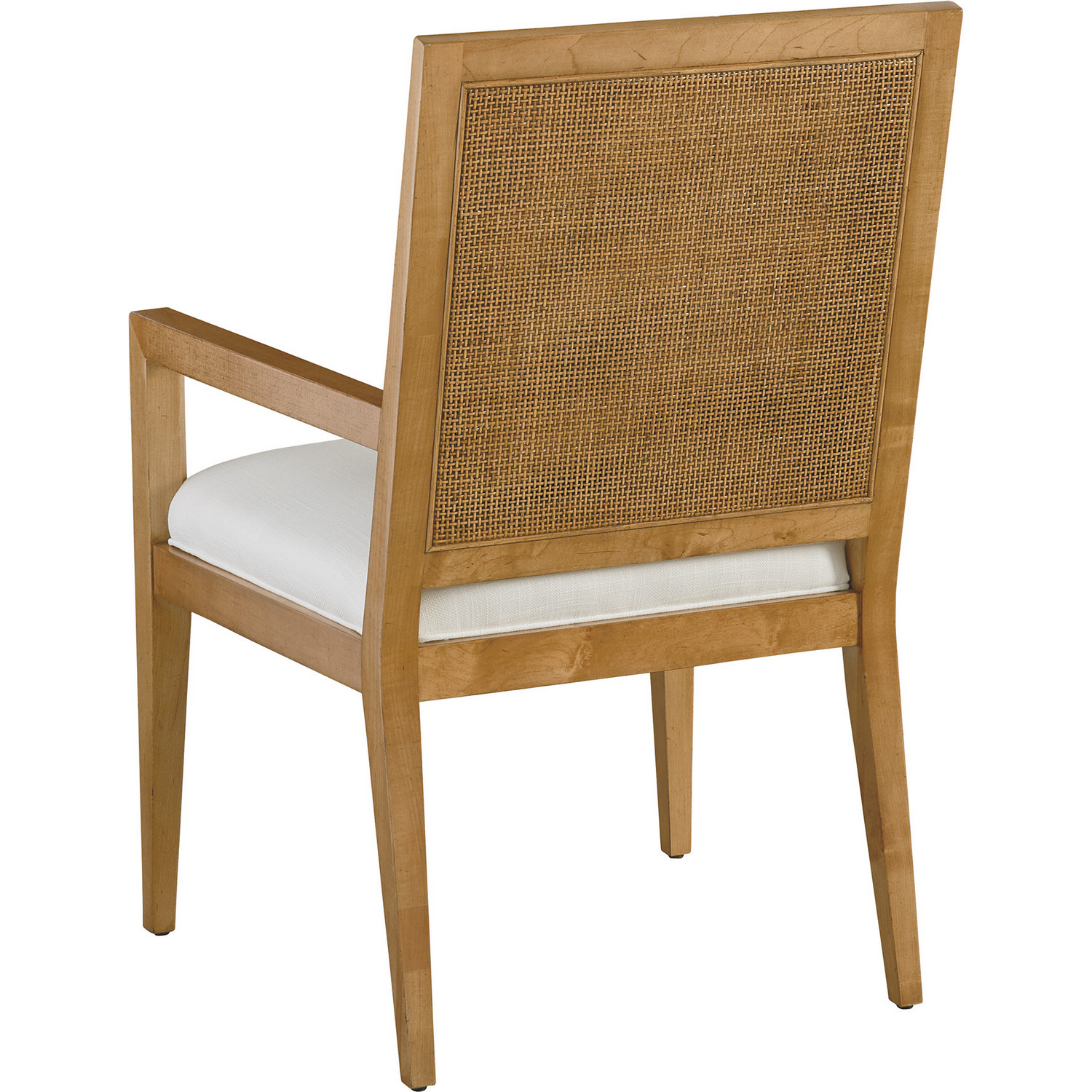 Barclay Butera Smithcliff Dining Arm Chair in Nutmeg Brown, Cane & Linen White Fabric