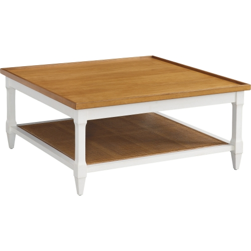Barclay Butera Temple Sq Cocktail Coffee Table in Nutmeg Brown, Linen White & Cane