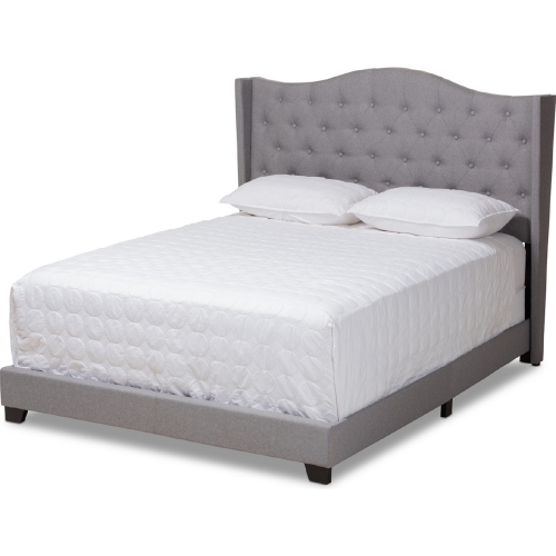 Baxton Studio Alesha-Grey-King Alesha King Bed Tufted Gray Fabric