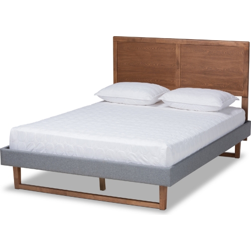 Baxton Studio Allegra Queen Platform Bed in Dark Gray Fabric & Ash Walnut Finish