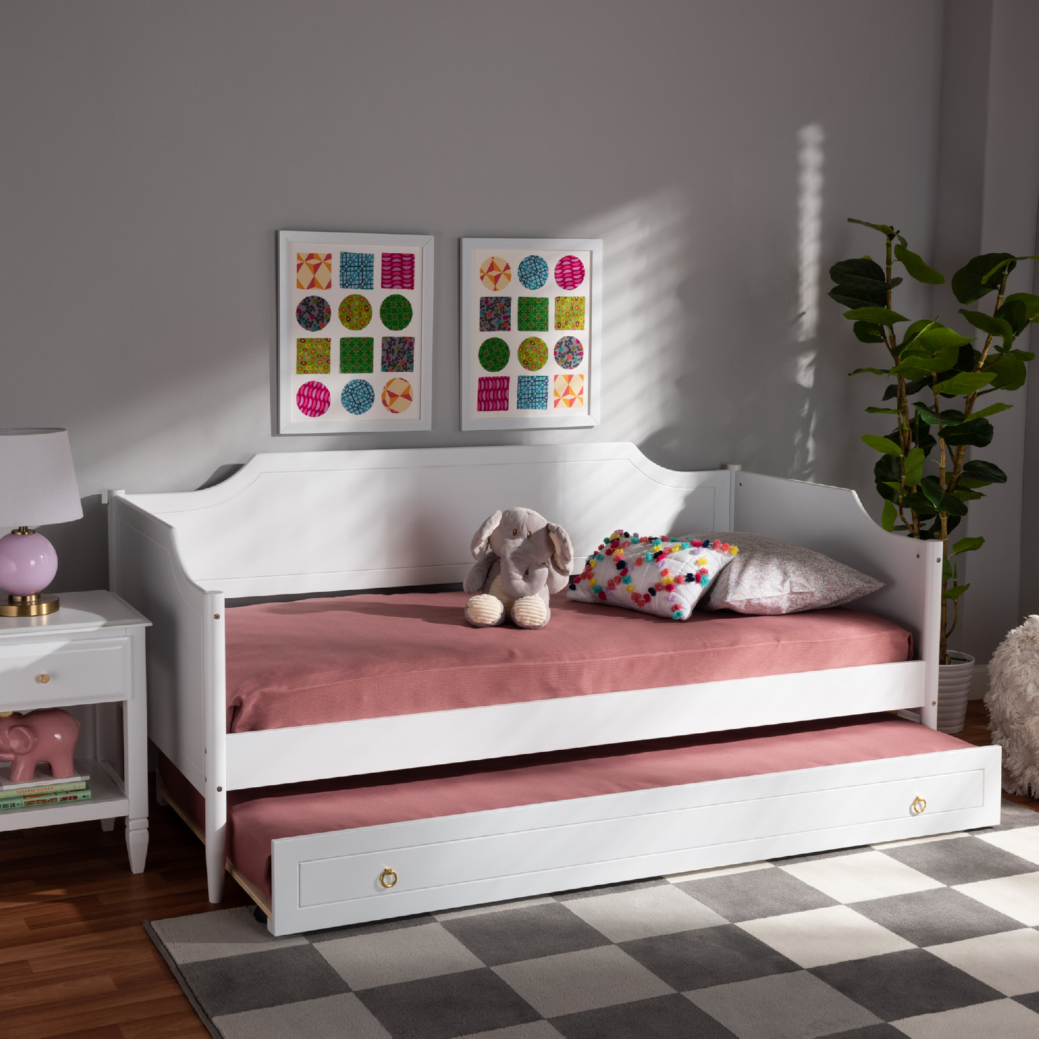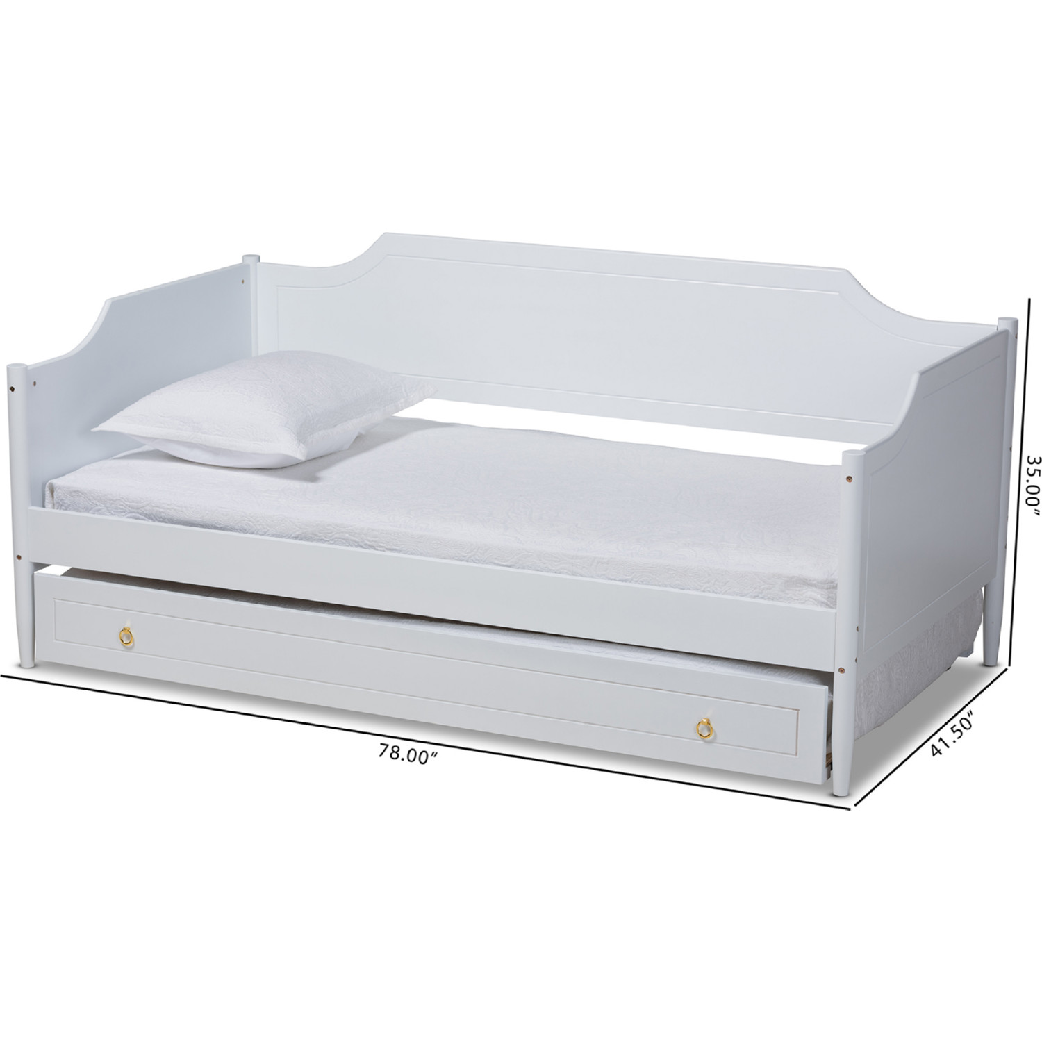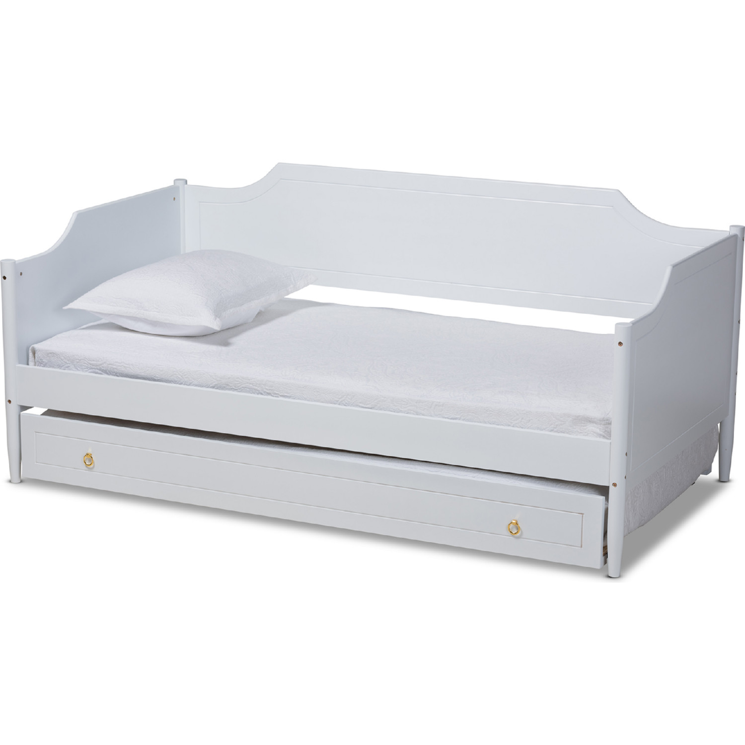 Baxton Studio Alya Twin Daybed with Roll Out Trundle in White Wood