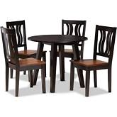 Baxton Studio Anesa 5 Piece Dining Set in Dark Brown Wood