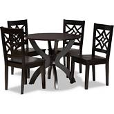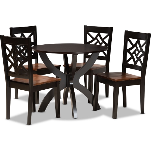 Baxton Studio Anila 5 Piece Dining Set in Dark Brown & Walnut Brown Wood