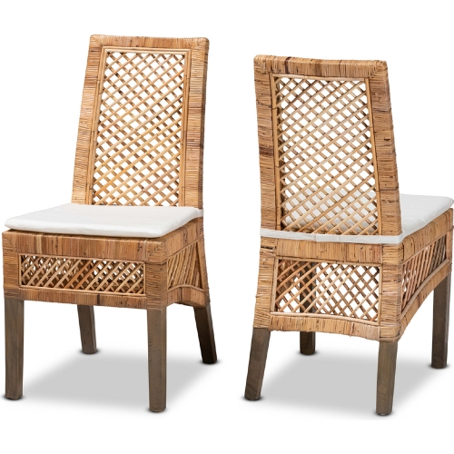 Baxton Studio Argos Dining Chair in Natural Brown Rattan & White Fabric (Set of 2)