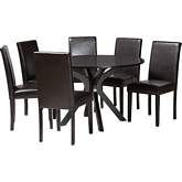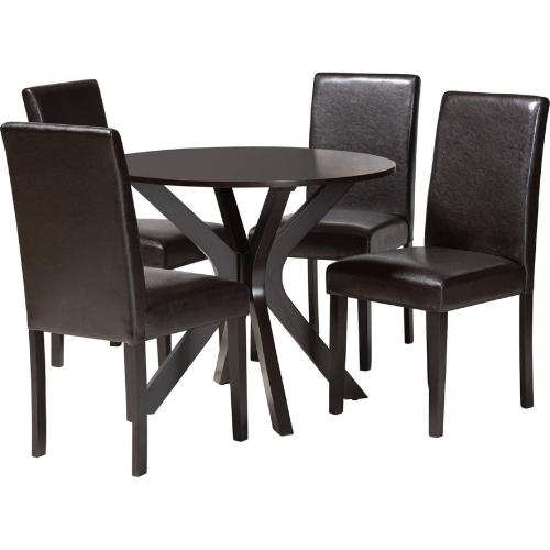 Baxton Studio Asli 5 Piece Dining Set in Wood & Espresso Brown Leatherette
