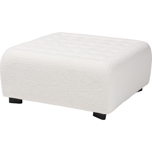 Baxton Studio 2211-Beige-Ottoman Athena Square Ottoman Tufted Ivory Boucle Fabric Black Wood