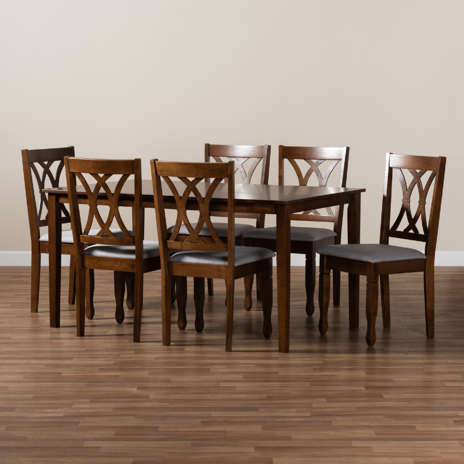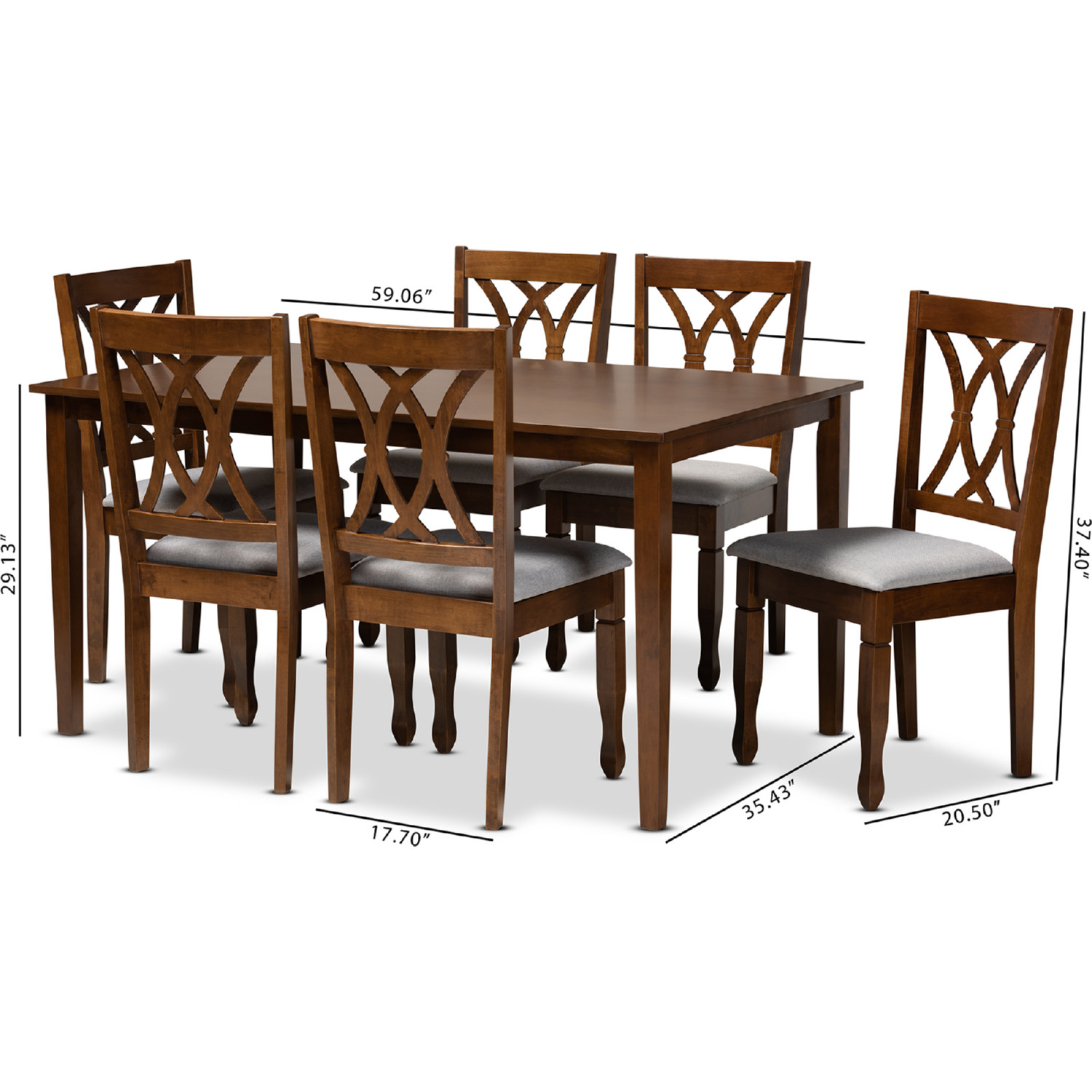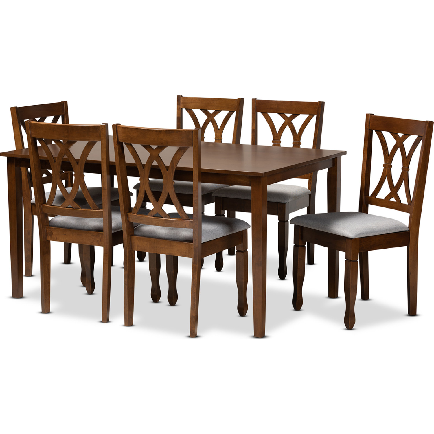 Baxton Studio Augustine 7 Piece Dining Set Gray Fabric & Walnut Brown Finish
