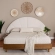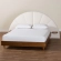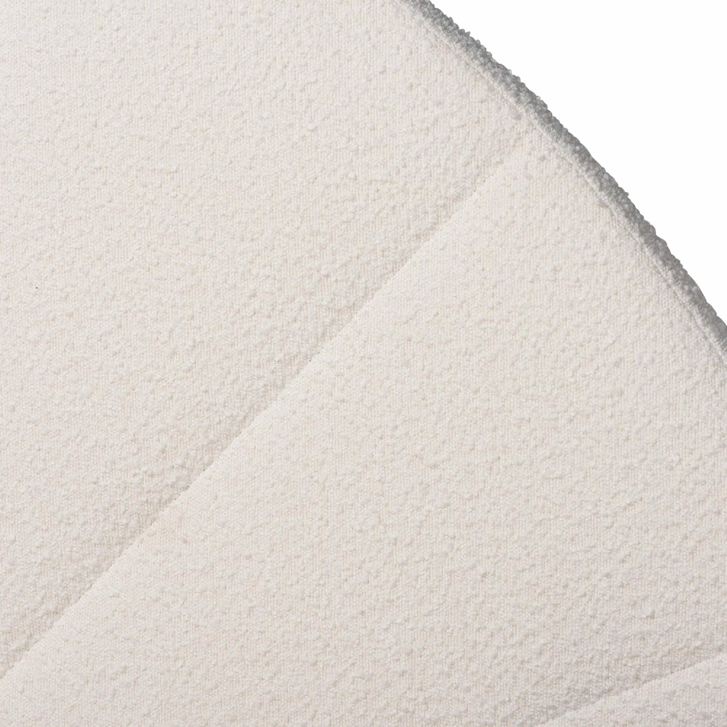 • Crescent headboard padded w/ foam & upholstered in channel tufted boucle fabric